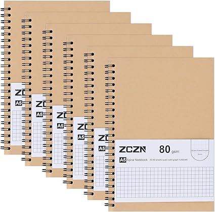 ZCZN Cuaderno a5 Cuadriculado, Pack de 6 Libreta a5, Cuaderno de Notas Cubierta de Kraft, Bloc de Notas a5 Espiral 60 Hojas/120 Páginas Diario de Viaje para Viajar Dibujo Escribir Listas de Tareas